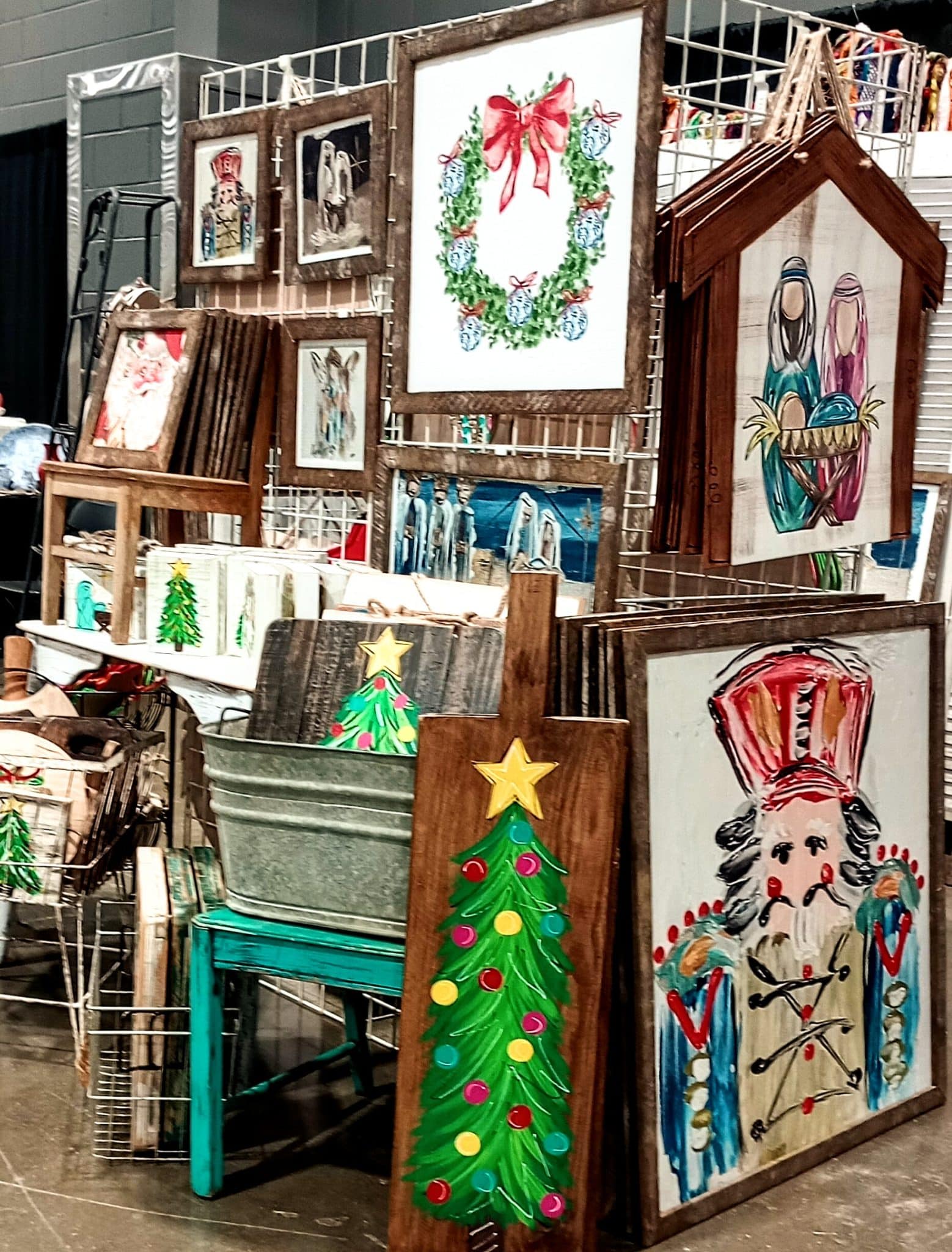 Ishi is back again this year with her beautiful prints framed with reclaimed wood. She also has some fun handpainted doorhangers and ornaments just in time to decorate for Christmas. She’ll also have lots of little happies for all of your gift giving needs.